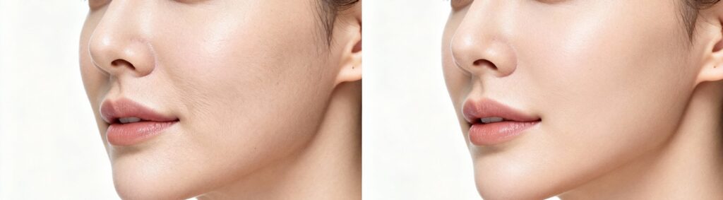 If your facial skin has begun to sag and lose firmness, non-surgical thread lifting can be an excellent option. During the procedure, dissolvable threads are inserted beneath the skin—from the upper cheek area down toward the lower cheek. These threads are gently pulled to lift and tighten the facial contours, resulting in a more youthful and defined appearance.